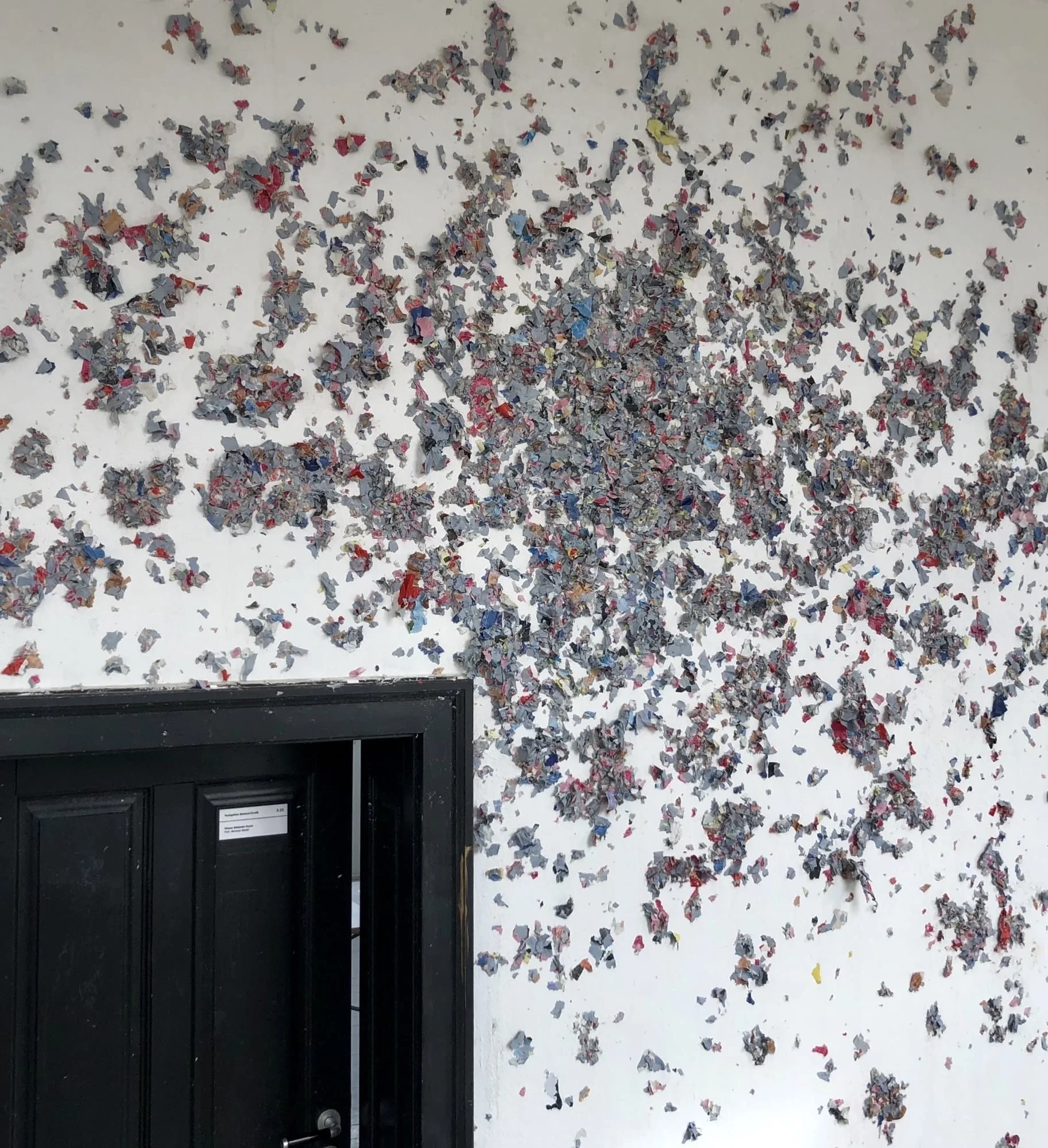 Solo Action painting installation made from torn-down highway posters.